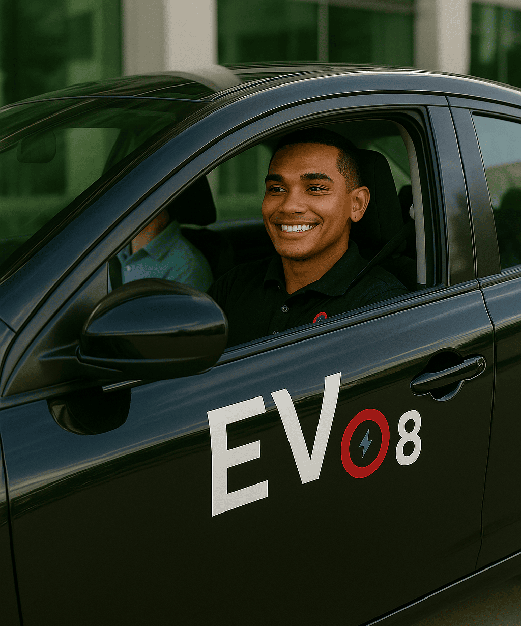 Your O8 EV arrives. Sit back, relax, and enjoy a zero-emission ride with O8.